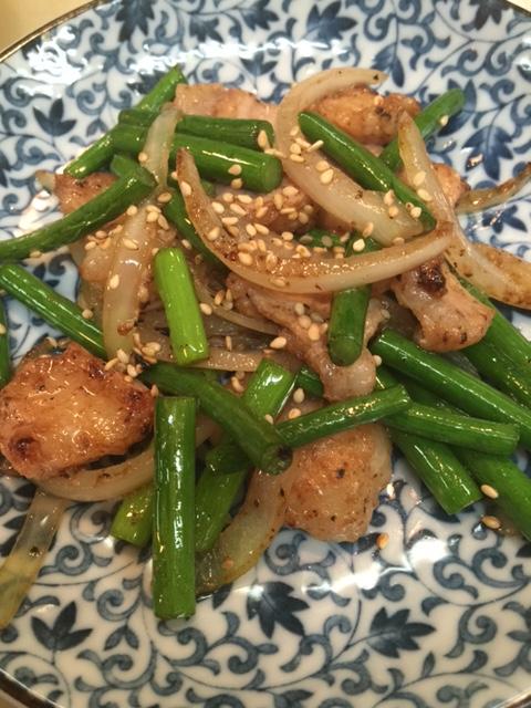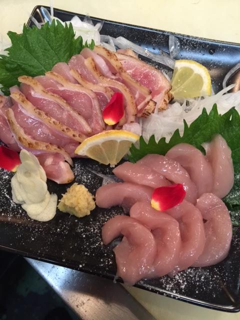 しま腸とニンニクの芽旨塩炒め朝引き鶏盛り合わせ